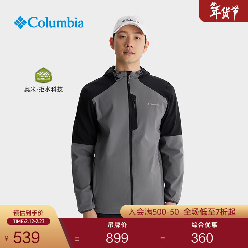 旗舰店Columbia哥伦比亚户外男子拒水干爽软壳衣徒步运动连帽外套AE0015 023 城市灰拼黑色 S (170/92A)