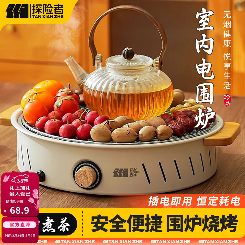 旗舰店探险者围炉煮茶电围炉套装器具全套取暖炉家用围聚无烟烤火炉烧烤烤肉 电围炉【烤网款】