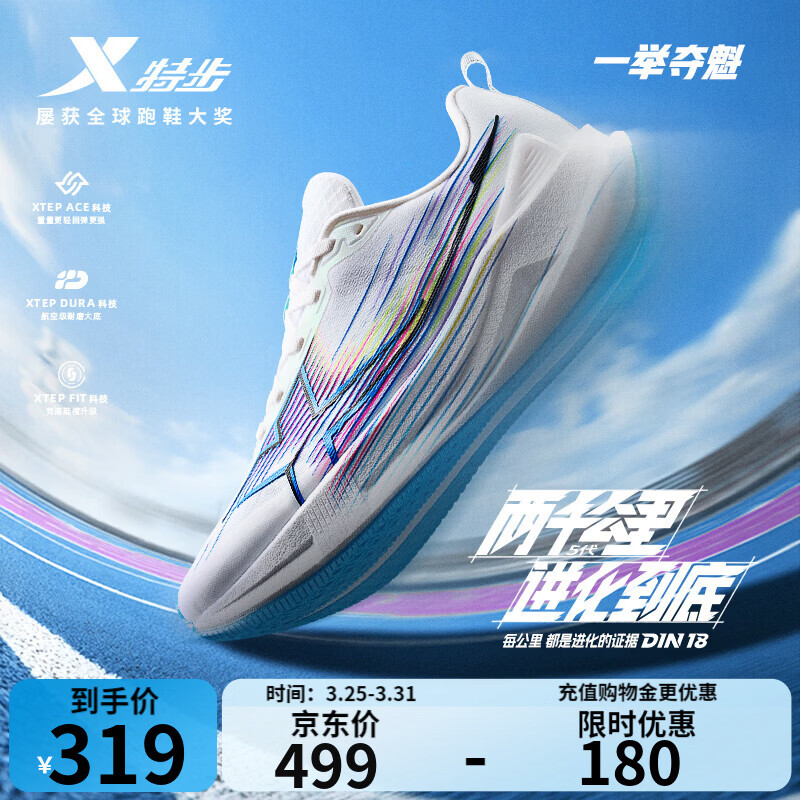 旗舰店特步(XTEP)两千公里五代跑步鞋男减震回弹轻便夏季透气黑色运动鞋2000km5代 经典白/北京蓝【一举夺魁】 42