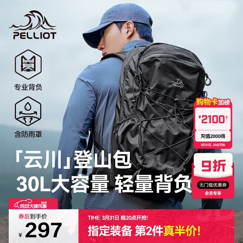 自营伯希和(Pelliot)【云川】户外登山包徒步背包旅行轻便双肩背包男165025040岩灰30L