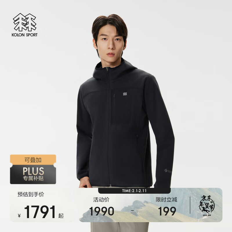 自营KOLON SPORT可隆软壳衣防风透湿GTX WINDSTOPPER男士抓绒连帽夹克