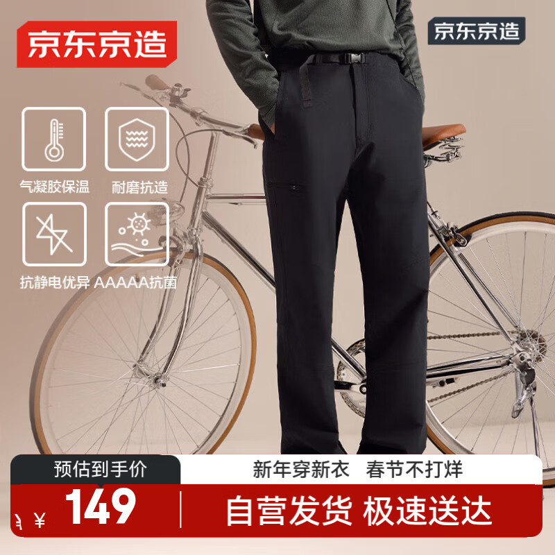 自营京东京造男士户外弹性防风松紧腰带软壳凝胶温控裤 黑色 S
