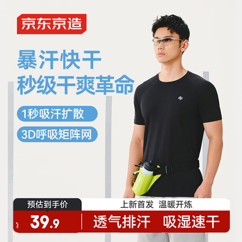 自营京东京造春夏男士跑步系列运动短袖男暴汗速干呼吸t恤特级礼物 黑色