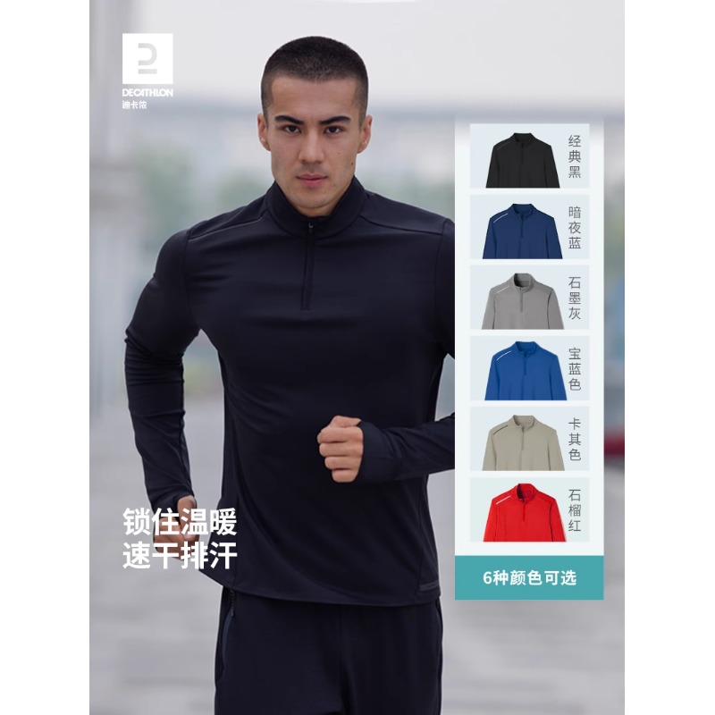 旗舰店迪卡侬排汗运动长袖T恤男初春加绒卫衣训练服健身上衣跑步145903