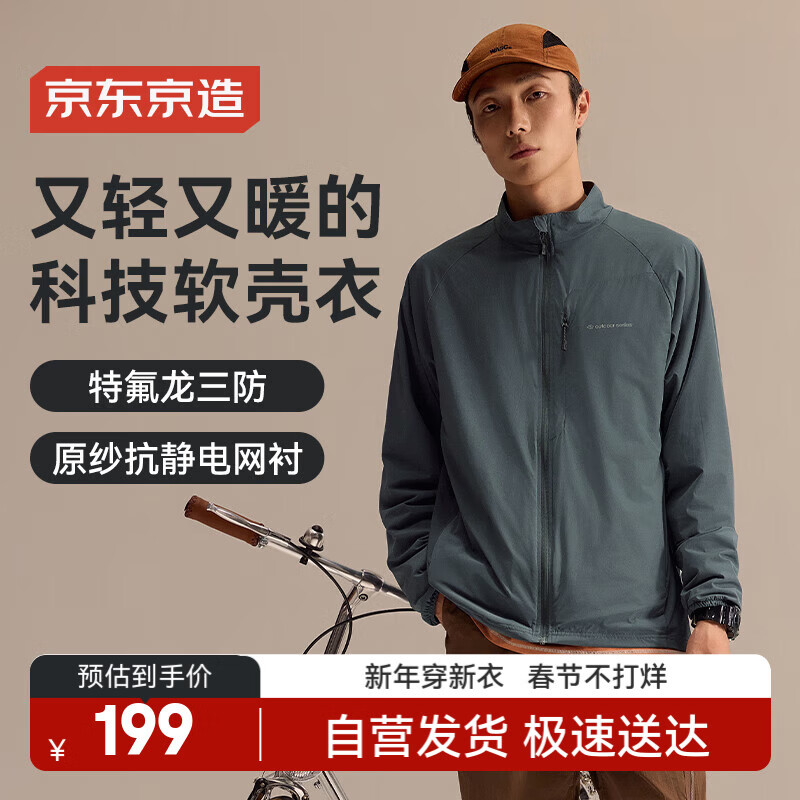 自营京东京造26冬季御风兽300超轻三防户外立领软壳衣裤保暖外套1.0 松石绿XL