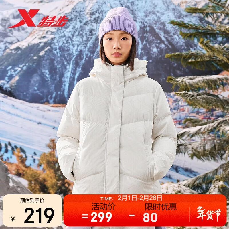自营特步【门店同款】女子运动羽绒服户外运动秋冬保暖加绒加厚时尚百搭