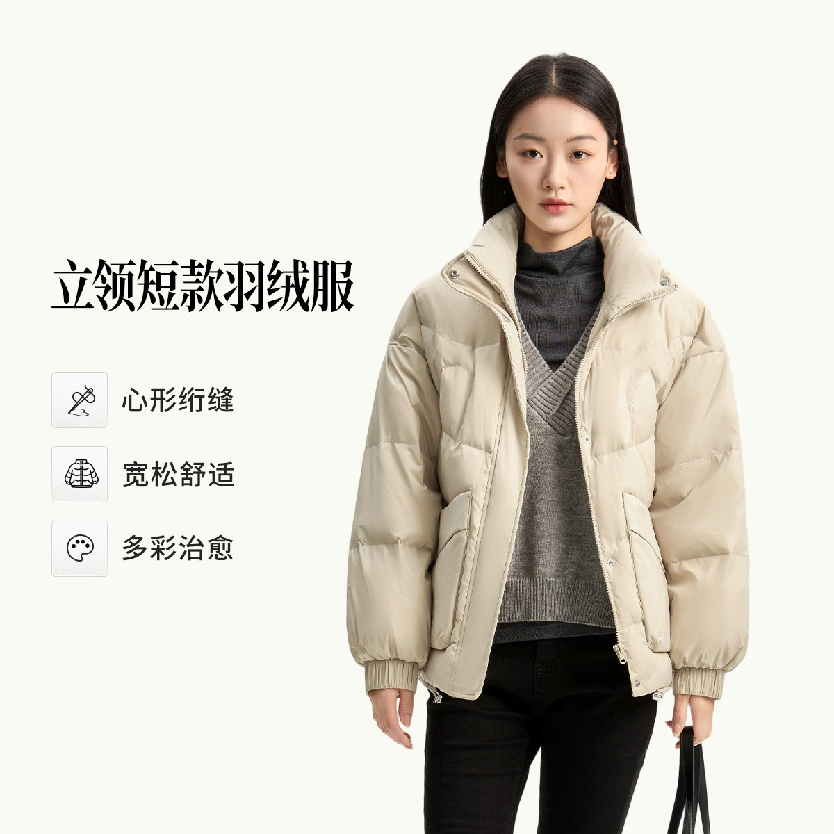 冰洁BENGEN 短款羽绒服女秋冬时尚立领小个子休闲宽松保暖外套潮