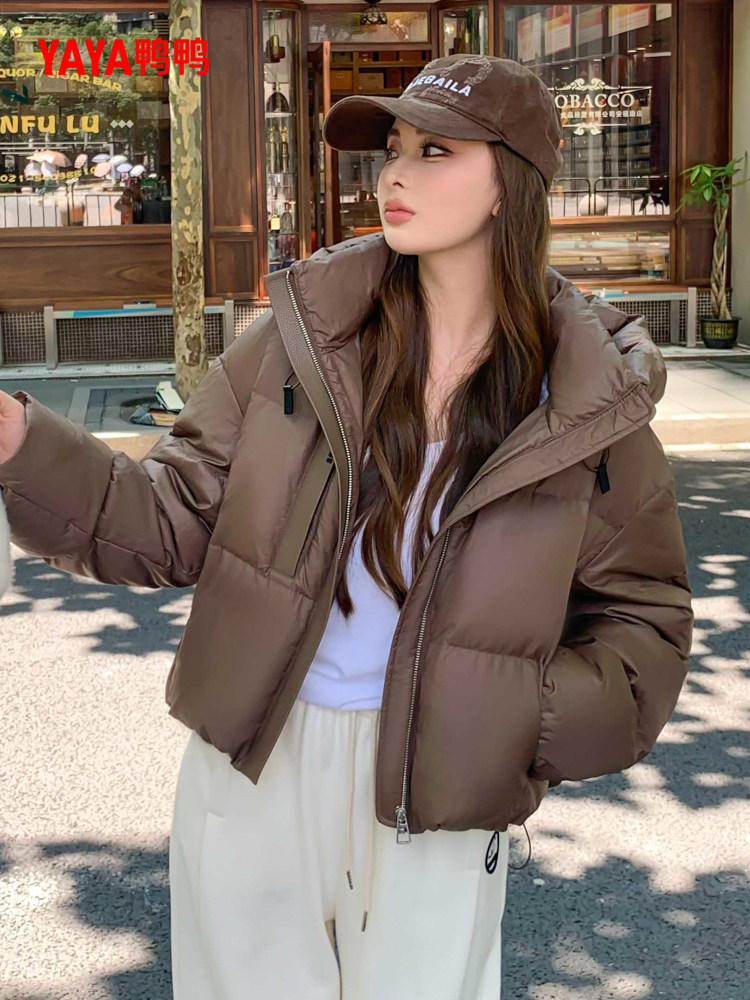 旗舰店骆驼羽神女装鹅绒羽绒服短款2025冬新款保暖加厚连帽羽绒鹅绒外套