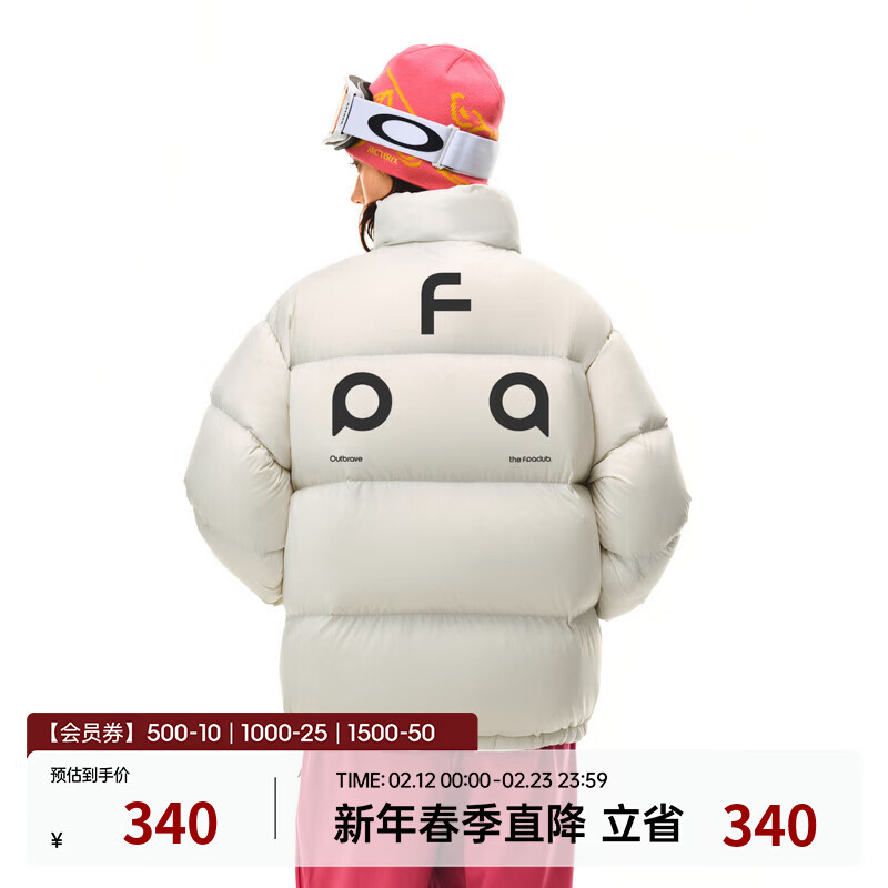 旗舰店FPA字母印花休闲羽绒服男款 冬季新款潮流情侣保暖防风防寒外套 杏色 M