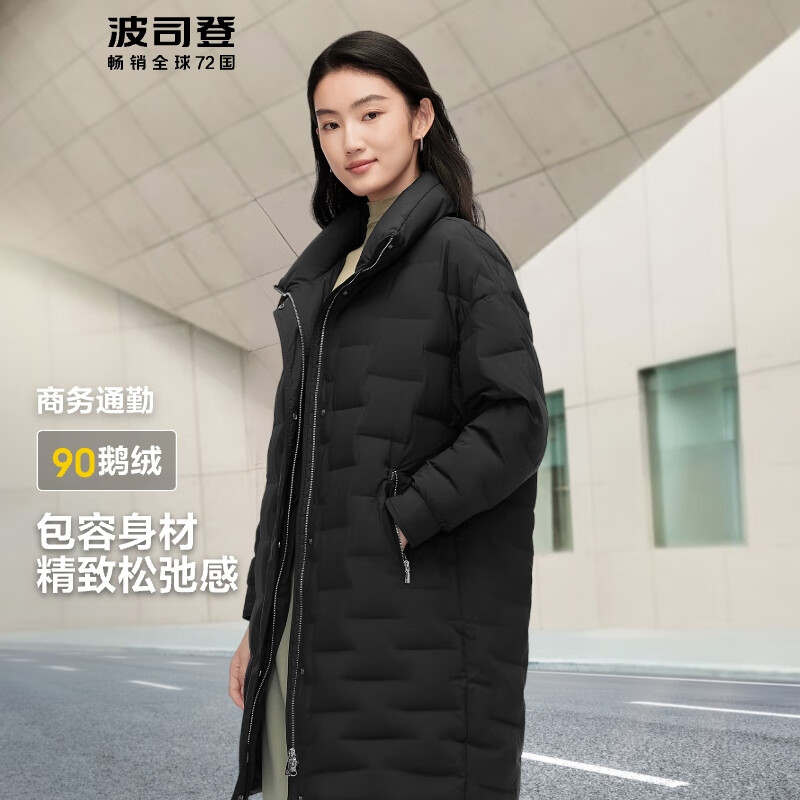 旗舰店波司登(BOSIDENG)轻薄鹅绒羽绒服女中长款90绒收腰商务通勤保暖翻领外套 黑色8056 M 165/88A