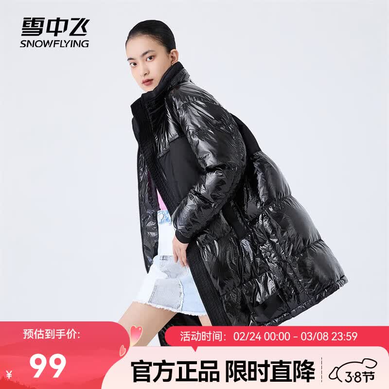 旗舰店雪中飞【清仓】秋冬新品时尚休闲系列中长款女保暖潮流百搭羽绒服女 黑色|8056 M 165/88A