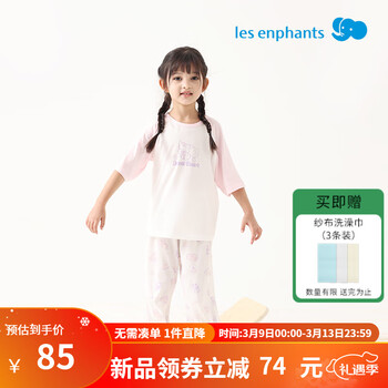 旗舰店丽婴房(Les enphants)童装婴儿衣服儿童短袖睡衣套装宝宝两粒扣内衣套装夏 80CM/1岁