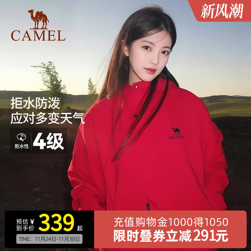 旗舰店骆驼全地形夹克运动三防外套男女款冬加绒户外防风防水黑色登山服