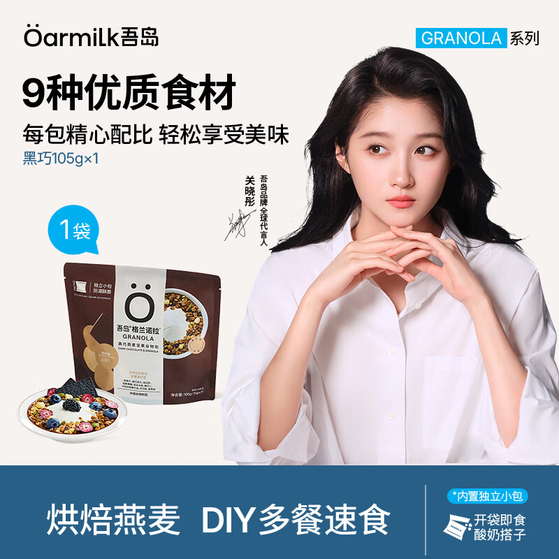旗舰店OarmiLk吾岛格兰诺拉黑巧燕麦片坚果即食早餐15g*7包独立小包麦片谷物