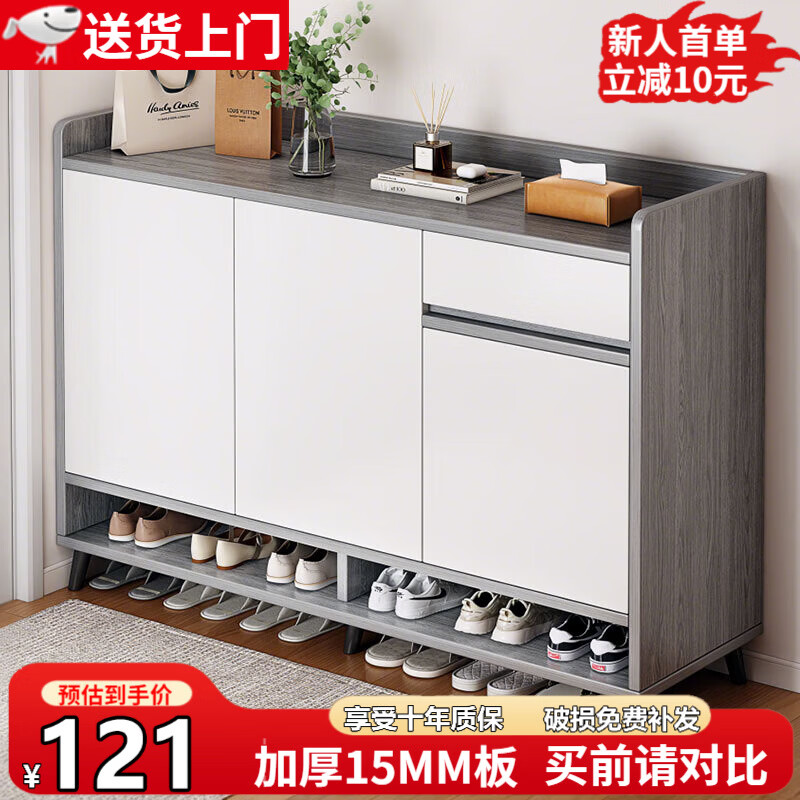 旗舰店立太(LEADTEK)鞋柜门口入户收纳柜大容量一体靠墙玄关柜多层家用收纳架小型鞋架 【热销回馈-加厚高密度板】100*30*100CM莫兰迪色 E1级