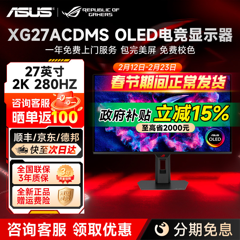 旗舰店国补华硕ROG超杀27 OLED电竞显示器27寸2K280hz显示屏XG27ACDMS
