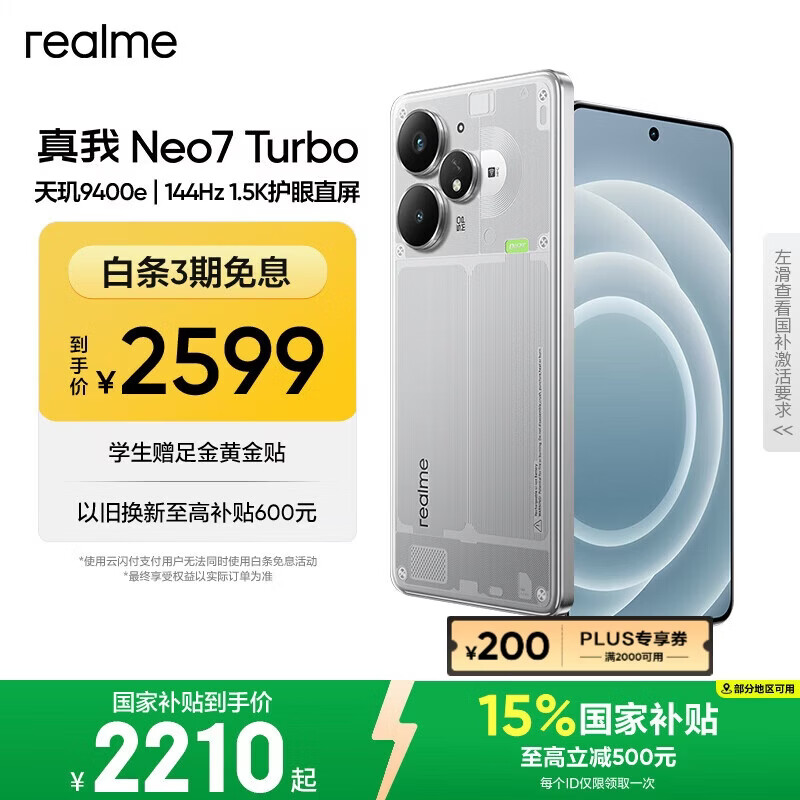 自营realme【国家补贴】真我Neo7 Turbo oppo天玑9400e 超薄续航大电池直屏 智能游戏AI性能手机16+512透明灰