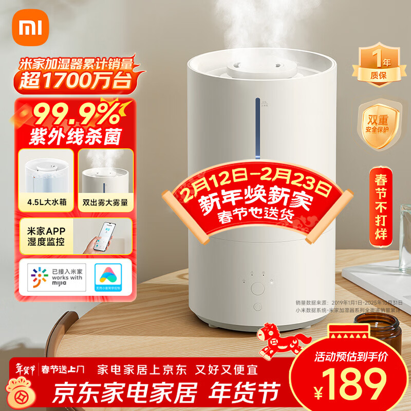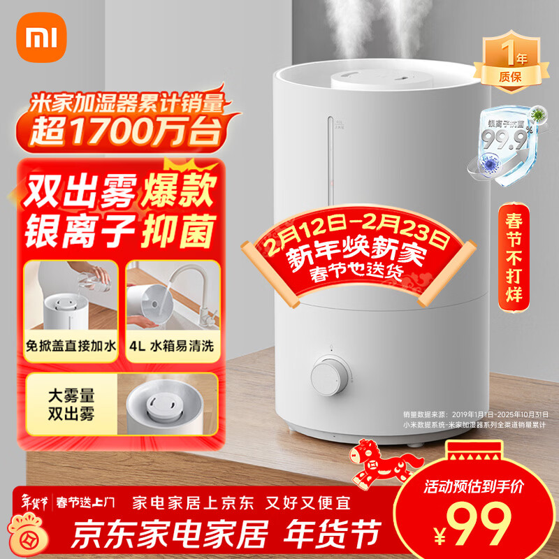 自营米家小米智能除菌加湿器2加湿器卧室轻音杀菌孕妇婴儿智能恒湿上加水保湿礼品 4.5L大容量MJJSQ05DY
