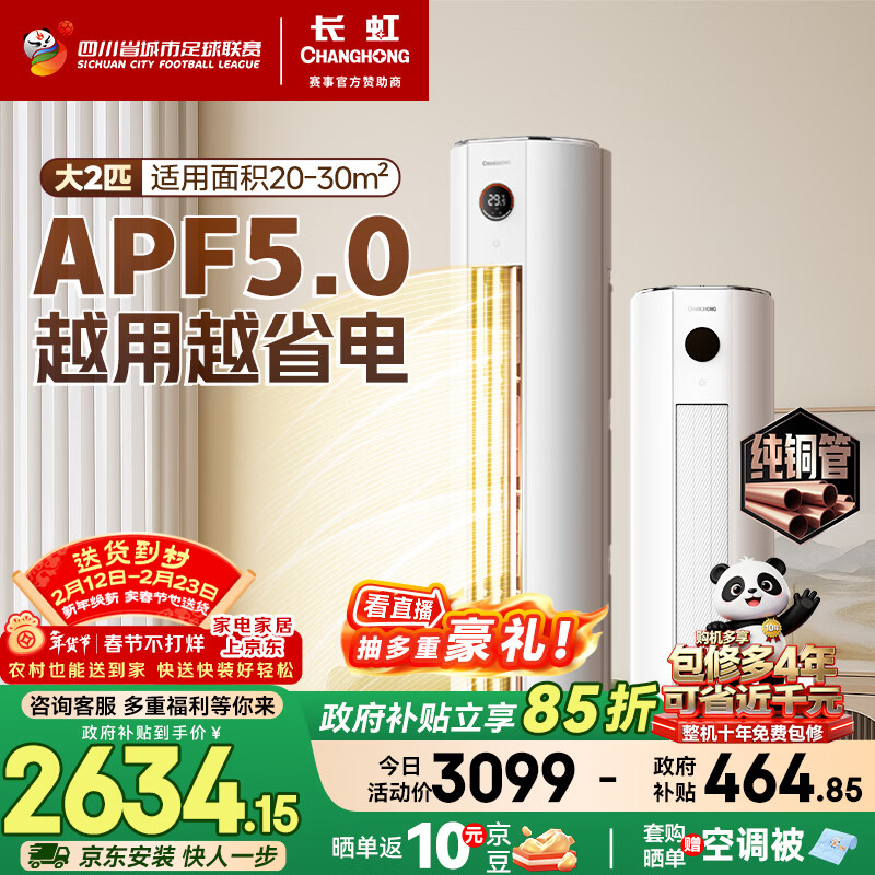 自营长虹空调大2匹 新一级熊猫懒超省电纯铜管立式柜机国家补贴以旧换新KFR-51LW/ZDTTW2+R1(SE) 十年包修
