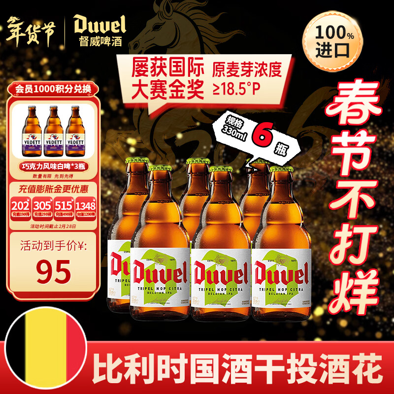 自营督威三花IPA精酿啤酒330ml*6瓶 比利时原瓶进口 聚会自饮高端年货送礼