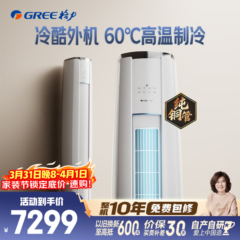 自营格力空调 京致 3匹 新一级能效变频 纯铜管上下出风舒适风不吹人客厅柜机 国家补贴 KFR-72LW/NhAj1BGj