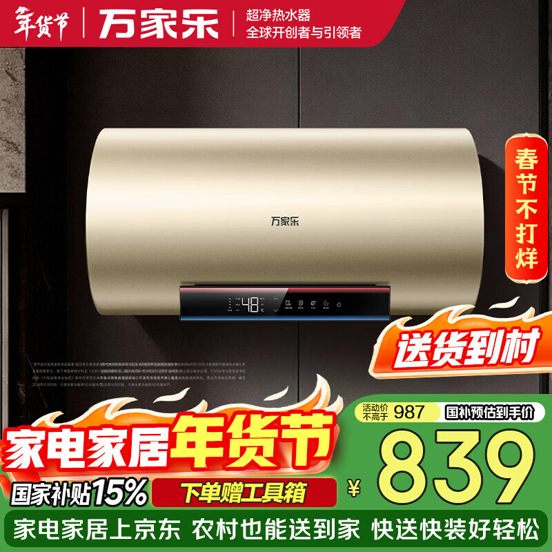 自营万家乐【安全大师R7】镁棒免换 出水断电 一级能效 3000W速热50升家用储水式电热水器