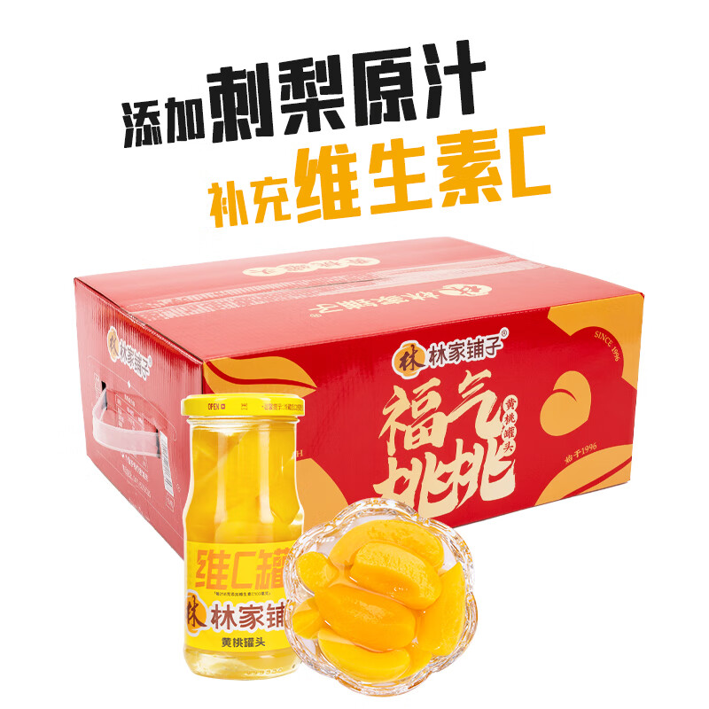 自营林家铺子【年货礼盒】维C黄桃罐头 258g*10罐 过年送礼 玻璃罐