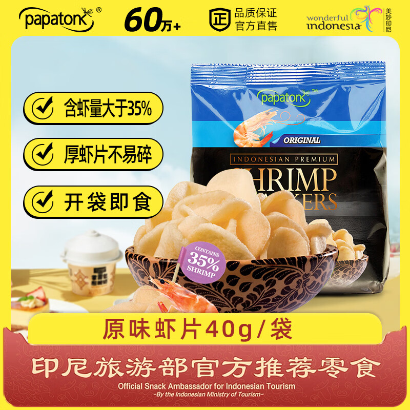 自营啪啪通(Papatonk)印尼进口虾片 原味虾片40g/袋 薯片膨化食品 办公室零食