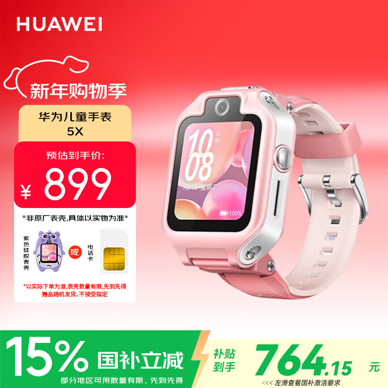 自营华为(HUAWEI)儿童手表 5X 星云粉 智能手表 离线定位 高清双摄 摇摇手加好友 防水等级IPX8男女童