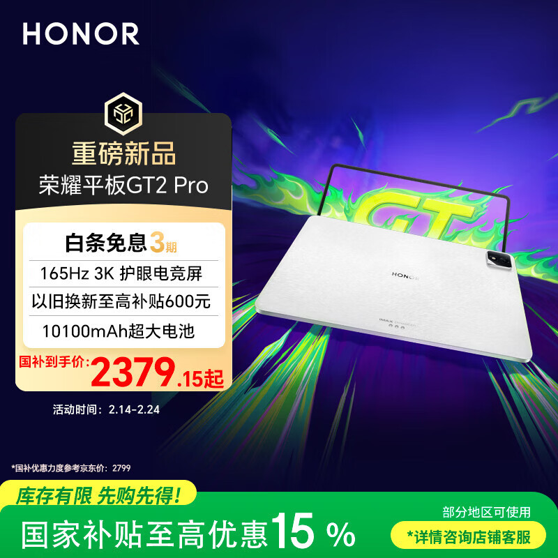 自营荣耀平板GT2 Pro 12.5英寸平板电脑 165Hz 3K护眼电竞屏 满血8Gen3旗舰芯 12+256GB幻影灰【国家补贴】