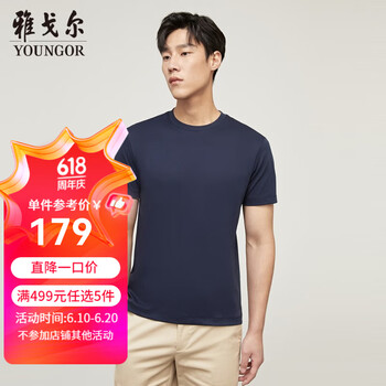 旗舰店雅戈尔(YOUNGOR)父亲节短袖T恤男圆领丝柔棉面料透气舒适精致工艺T恤新品 VSPC533094FYA藏青 M