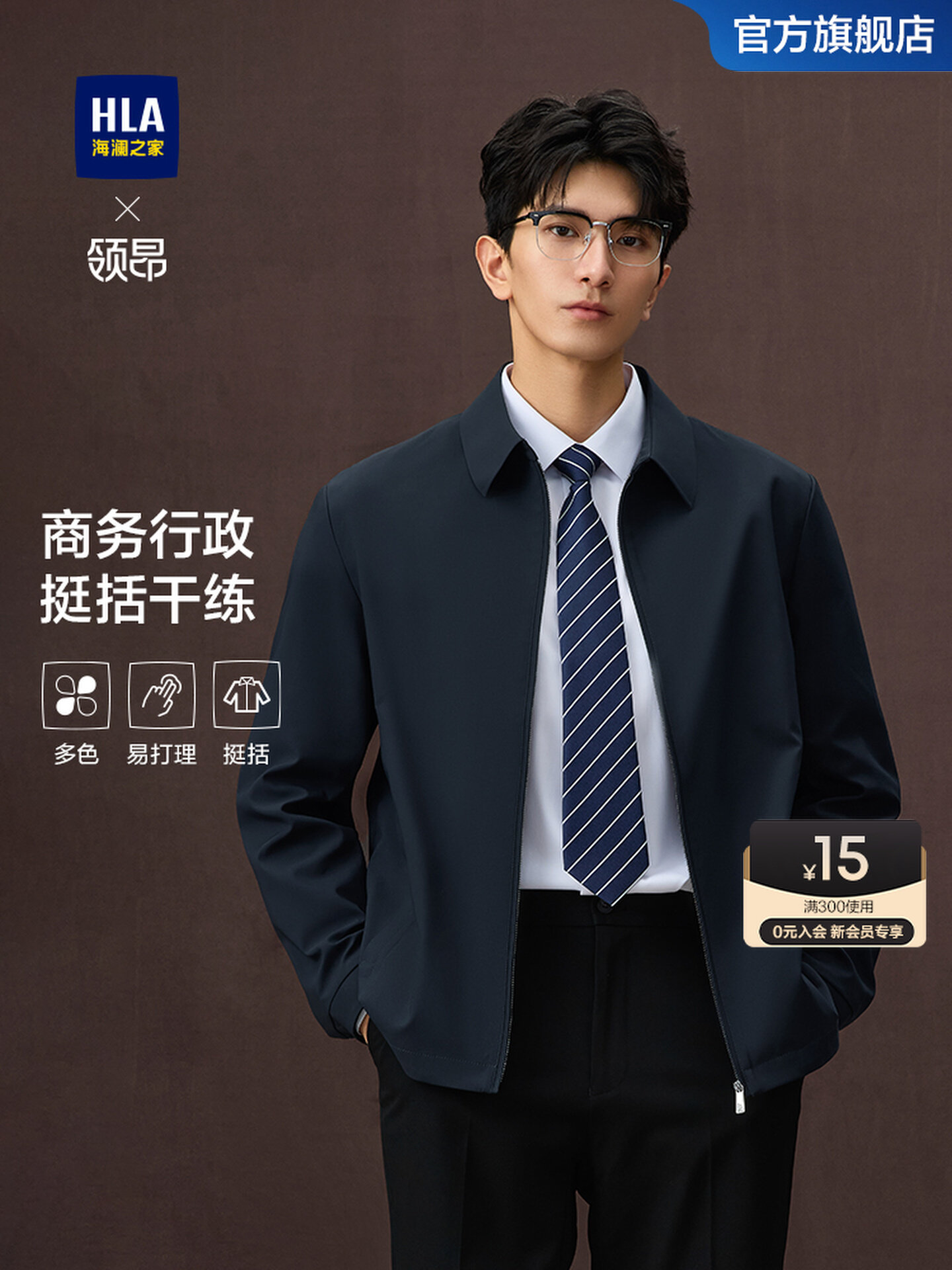 百亿补贴HLA/海澜之家领昂行政夹克春夏新款翻领通勤商务简约干部外套男装