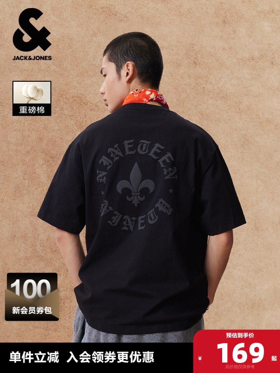 旗舰店【T恤清仓1】杰克琼斯男士短袖T恤夏季复古打底衫重磅棉情侣短袖