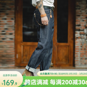 旗舰店马登工装 复古丹宁赤耳原牛重磅直筒牛仔裤原浆休闲长裤子男春季 牛仔深蓝 32