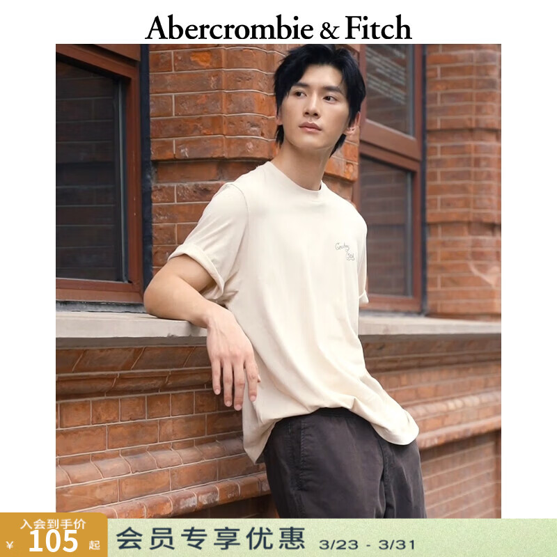旗舰店Abercrombie & Fitch美式复古经典百搭舒适棉质短袖T恤上衣25秋季男装123-5249 奶油色 S (175/92A)