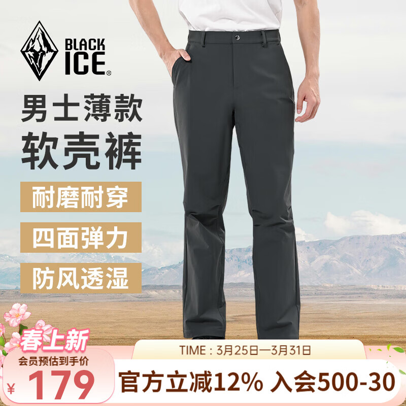 旗舰店黑冰秋冬男裤裤子休闲裤户外防泼耐磨防风透湿薄软壳裤 F2604MJ 水泥灰 XL