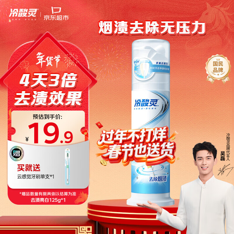 自营冷酸灵去渍亮白抗敏感泵式牙膏留兰薄荷味125g【吴磊推荐】