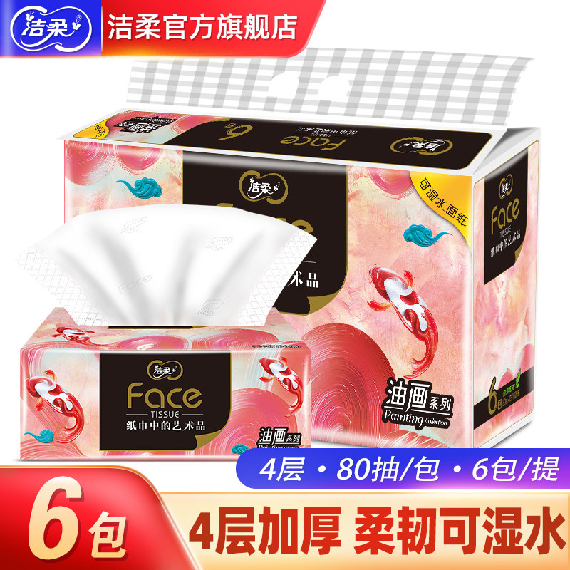 旗舰店洁柔锦鲤抽纸家用纸巾面巾纸可湿水4层6包实惠装官方旗舰店[顺]