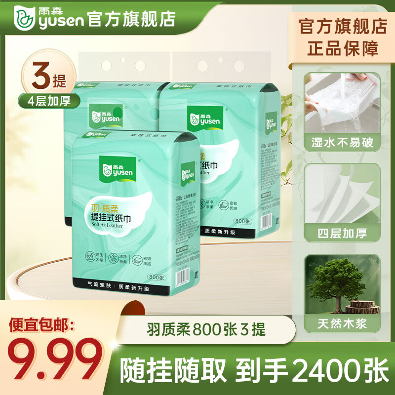 旗舰店雨森挂式抽纸纸巾大包壁挂抽纸擦手纸悬挂纸卫生纸家用4层加厚家庭装 4层 800张*3提 【热卖款】