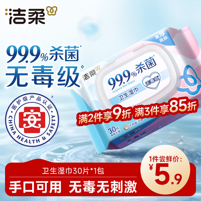 自营洁柔杀菌卫生湿巾30片