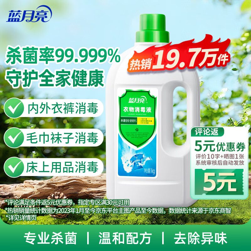 自营蓝月亮衣物消毒液 松木香 1kg瓶 杀菌率99.999% 内衣裤儿童混洗洗衣搭档