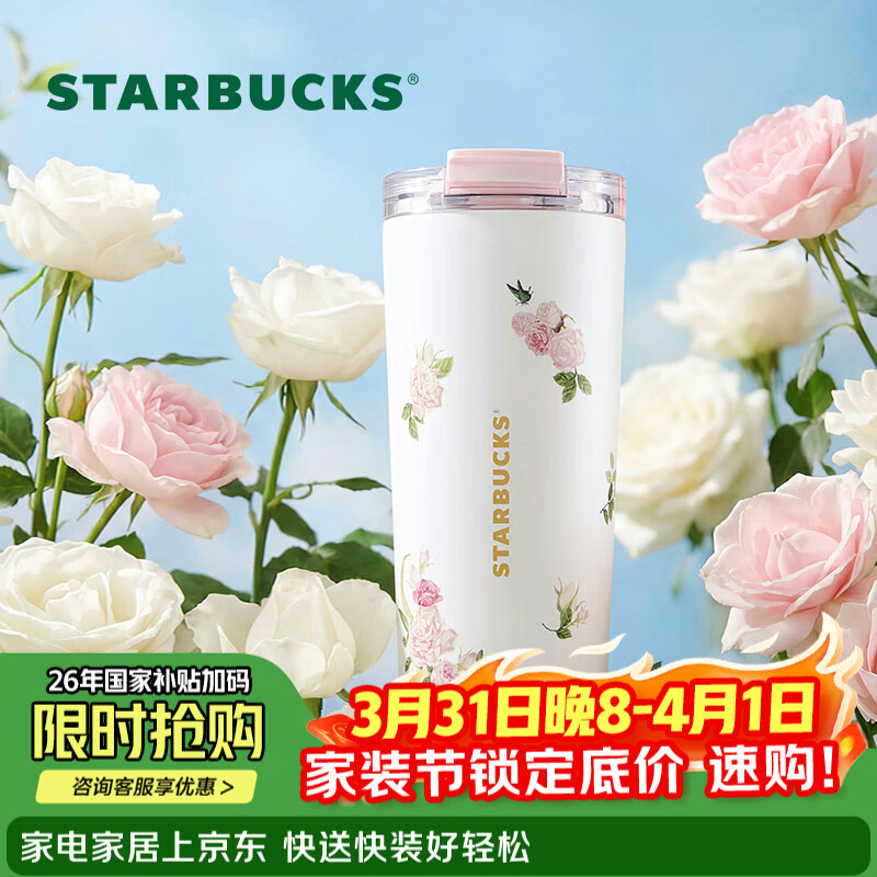自营星巴克(Starbucks)万花玫境系列双饮口不锈钢桌面杯680ml