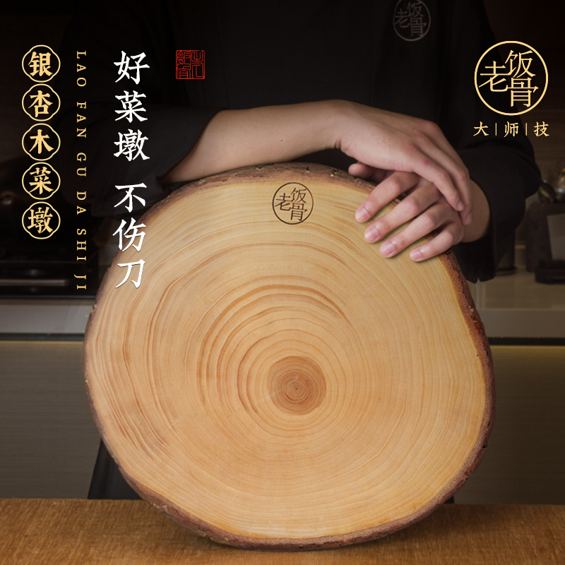 旗舰店【老饭骨】银杏木原木菜墩大砧板不伤刀防霉实木切菜板剁肉厨房案板