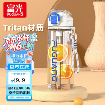 旗舰店富光学生夏季运动水杯吸管塑料杯子大容量耐高温tritan材质户外随行杯 珍珠白750ml