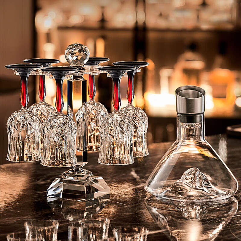 自营青苹果水晶玻璃红酒杯醒酒器杯架套装 红杆洋酒杯高脚杯新年礼物