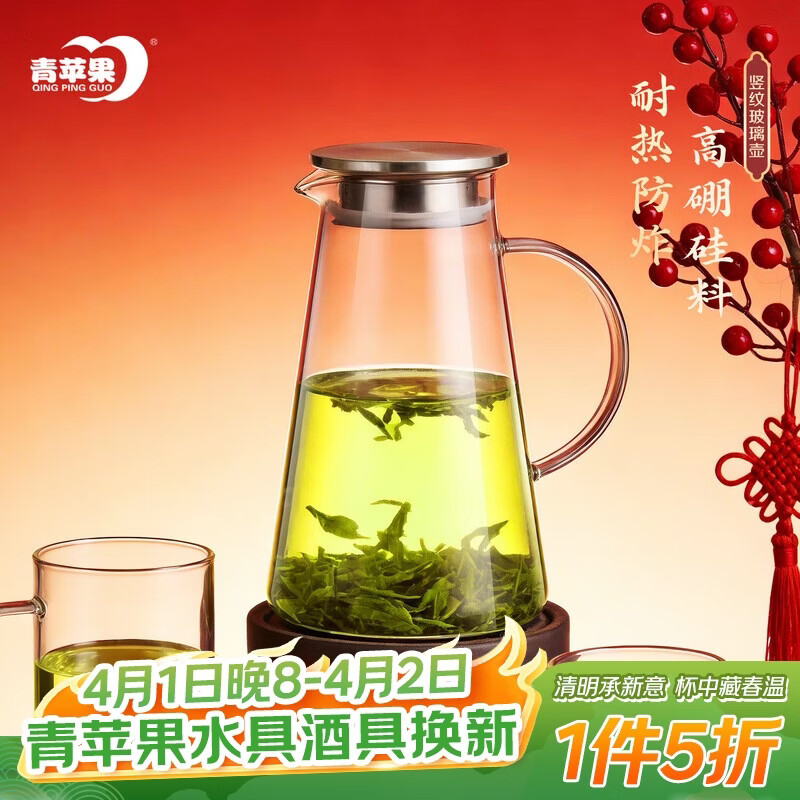 自营青苹果耐热玻璃凉水壶1.95升大容量 可加热烧水壶 泡茶煮凉茶壶冷水壶
