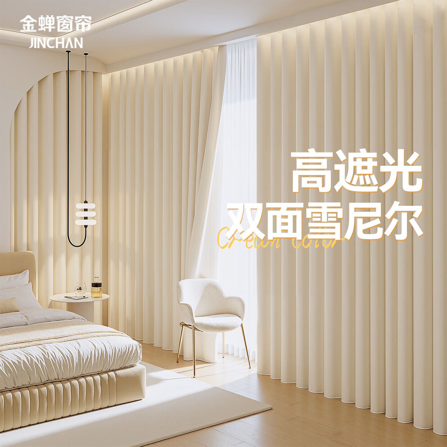自营金蝉窗帘家用遮光新款卧室客厅高级感双面雪尼尔抗菌隔音窗帘挂钩式