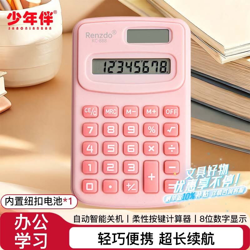自营少年伴 计算器 便携计算器无声迷你可爱小学生会计专用考试数学运算计算器 迷你马卡龙粉色