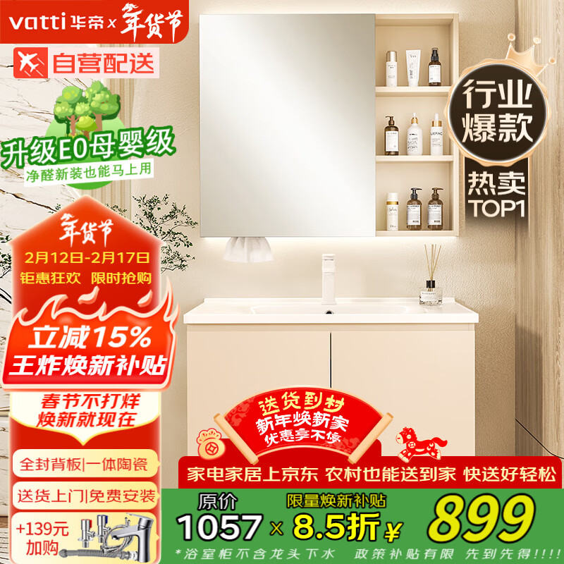 自营华帝(VATTI)E0级浴室柜组合陶瓷一体盆洗手盆柜组合卫生间洗脸盆柜组合洗漱台