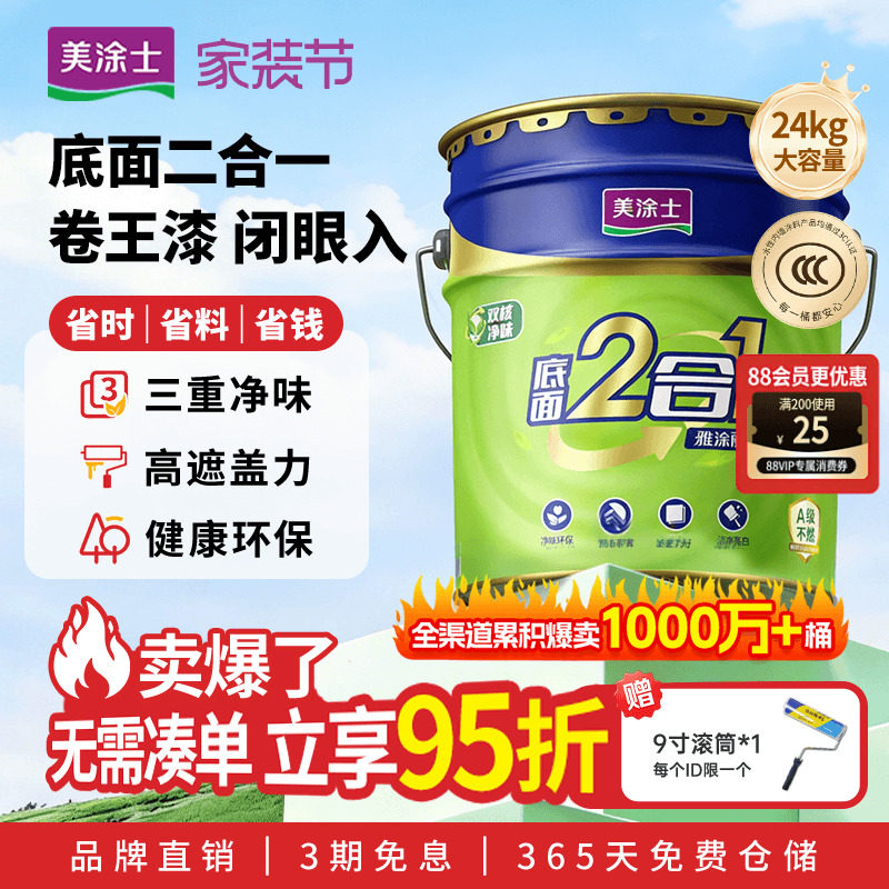 美涂士乳胶漆底面二合一免底漆室内家用墙面翻新自刷涂料内墙白漆